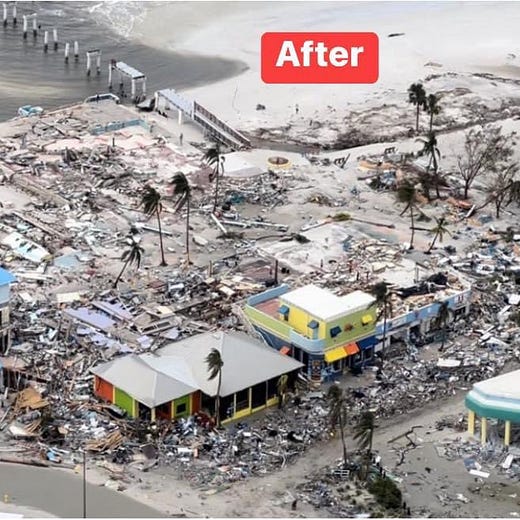 The only bridge to Sanibel collapsed in multiple places. Hundreds of service industry workers lost their livelihoods overnight. Historic buildings and homes washed away into the ocean; beloved community members died. Search and rescue efforts are ongoing (over 60 people confirmed dead so far), and horrifying stories continue to surface.
